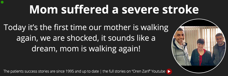 Stroke is a frightening and disabling condition for the patient. In the case of Bella L., the doctors said she would not fully recover and her family did not give up. But after three treatments by Oren Zarif, Bella was released from the hospital, not connected from the feeding tube and able to speak a few words. Today she is slowly recovering and walking again.