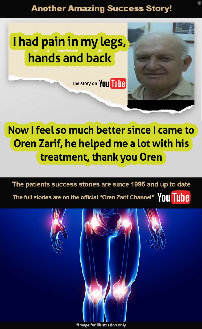Oren Zarif’s method has received international attention, with countless patients reporting healing from long-term leg pain, including:
